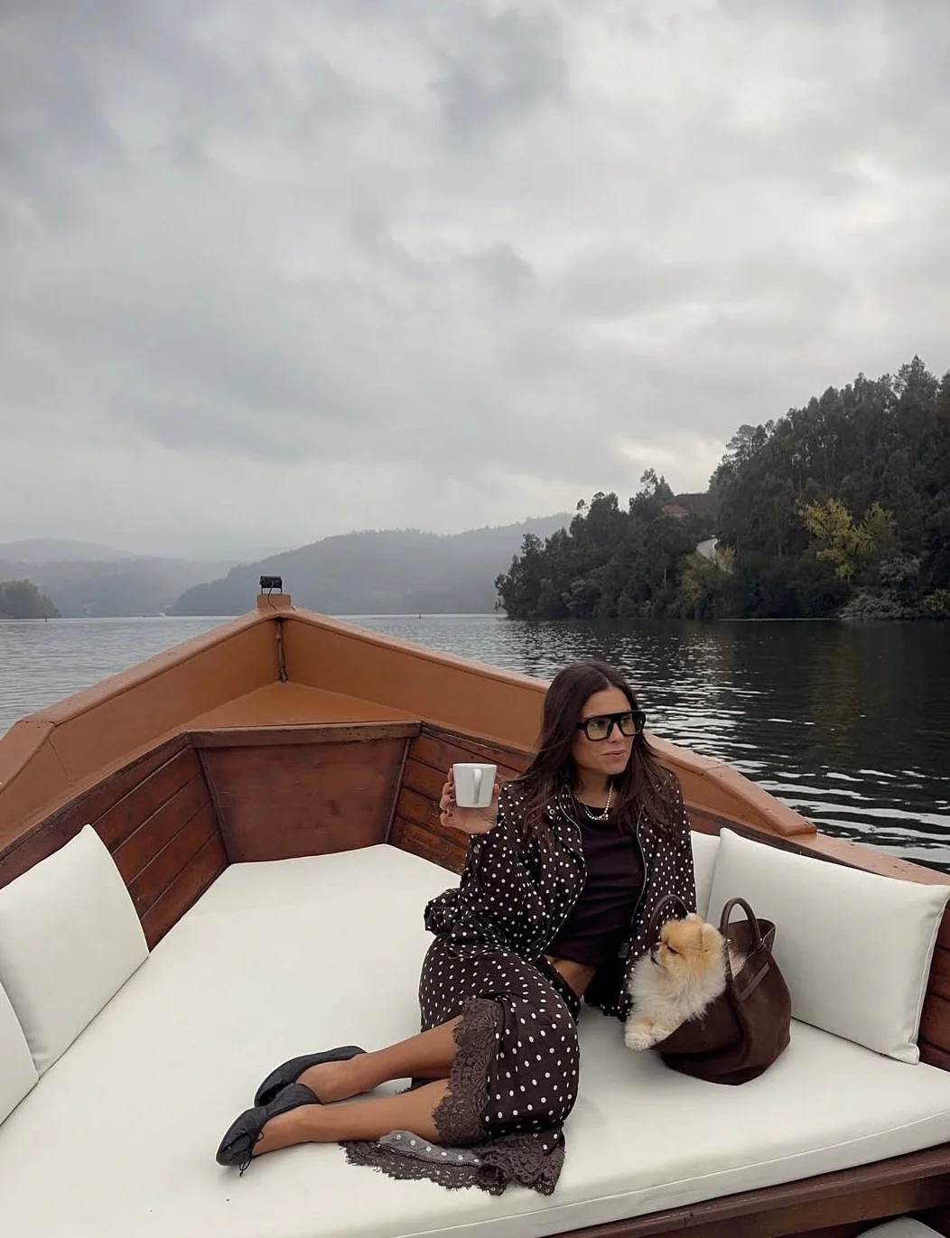 Polka Dot Satin Skirt with Lace Detail in Dark Brown